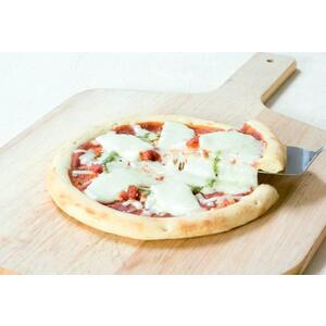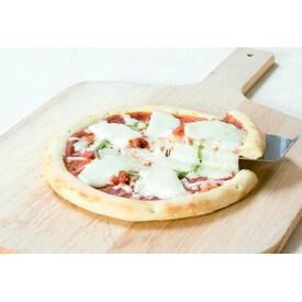 • 自然な焼き色で、外はパリッ、中はもちっとした食感が特徴のナポリ風クラストを使用。ナチュラルチーズ、トマトソース、ドライトマト・オイルづけ、バジルペースト、モッツァレラチーズをトッピングしました。直径約19cm。