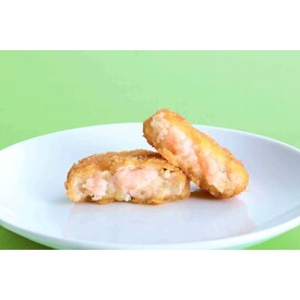 • 中種にバナメイえび、すけとうだらのすり身、たまねぎを使用し、衣を付けてフライにしました。バナメイえびを約20%配合し、えびのプリプリとした食感を楽しめるように仕上げました。夕食の一品やサンドイッチの具、お弁当などにどうぞ。