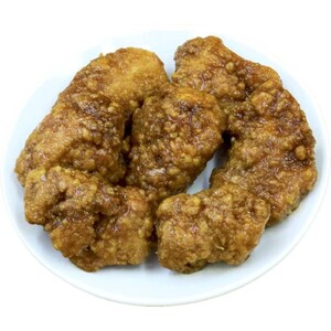 • ひと口大にカットした若鶏皮なしムネ肉(国産)の唐揚げに、鹿児島県の福山で醸造した黒酢入りの甘酢たれをからめました。調味後は熟成させ、肉感のあるやわらかな食感に仕上げています。まろやかな酸味とすっきりした甘さが特徴です。