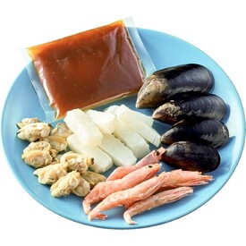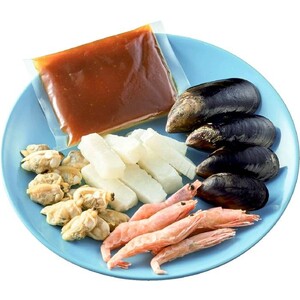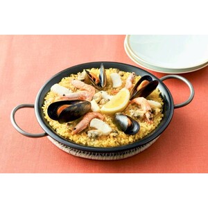 • ムール貝(チリ産)、いか、えび、あさりと別添のたれが入ったパエリアセットです。生米2合を加えてフライパン・炊飯器で手軽に調理できます。
