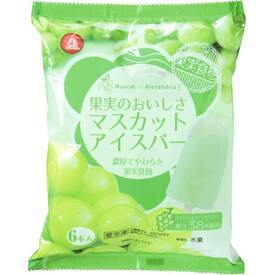 マスカットオブアレキサンドリア果汁38%使用。濃厚でやわらかく、果実の食感が楽しめるアイスバーです。