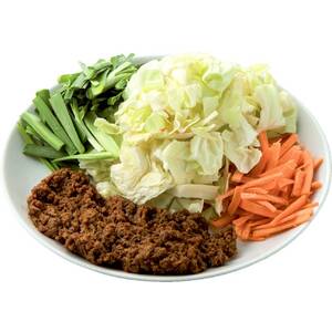 国産キャベツ、にら、人参、肉味噌のセットです。肉味噌は、鶏肉と大豆ミートを使用しています。セット内容 肉味噌:120g 野菜:240g(キャベツ・にら・人参) 調理時間目安約5分