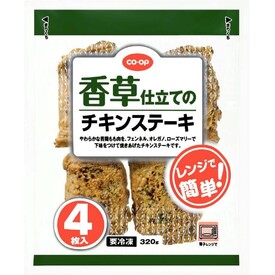 • やわらかな若鶏もも肉(タイ産)を、3種のハーブ(フェンネル・オレガノ・ローズマリー)で下味をつけて焼きあげたチキンステーキです。
