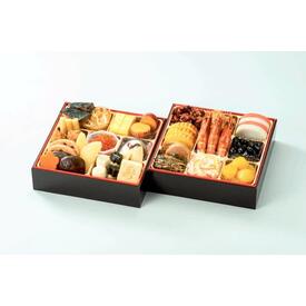 • 【壱の重】くるみ砂糖がけ・金ごま田作り・紅白かまぼこ・伊達巻・有頭海老・丹波篠山産黒豆・鶏肉二色巻・ゆず入り生酢・なると金時栗きんとん【弐の重】長崎県産ぶりの照焼・酢だこ・手まり湯葉・名古屋コーチンの肉団子・サーモントラウトローズ・昆布巻・たらこ煮・流星くらげ・本ズワイ蟹爪幽庵・味付数の子・蝦夷あわび煮【参の重】穴子八幡巻・ままかり黒酢漬・さつまいも甘煮・いか雲丹風味・カナダホッキ貝サラダ・味付いくら・厚焼玉子・れんこん煮・しいたけ煮・たたき牛蒡・たけのこ煮・寿高野煮・六角里芋煮・花形人参